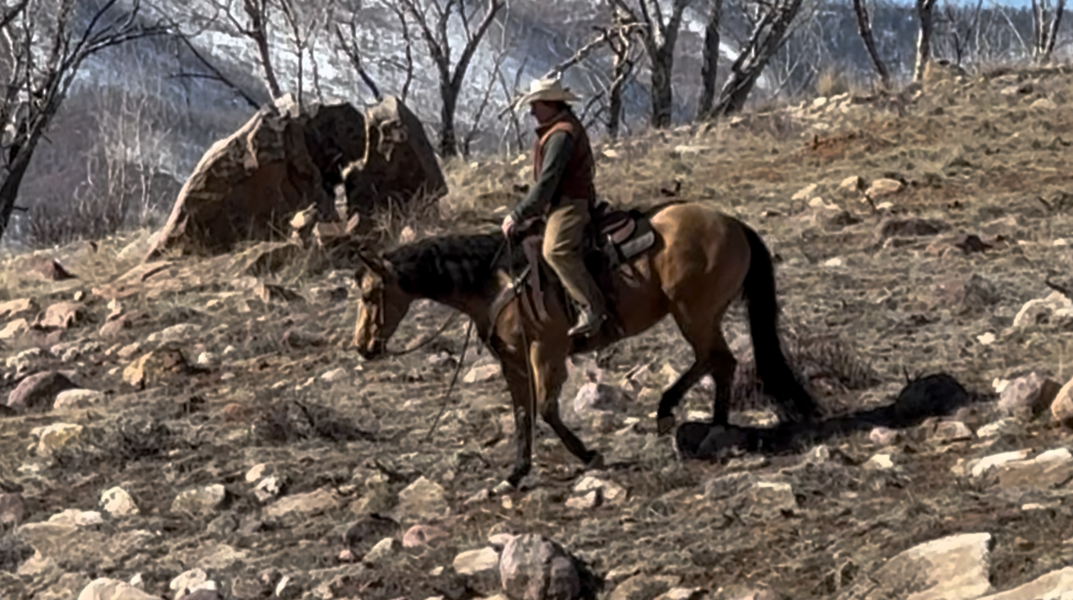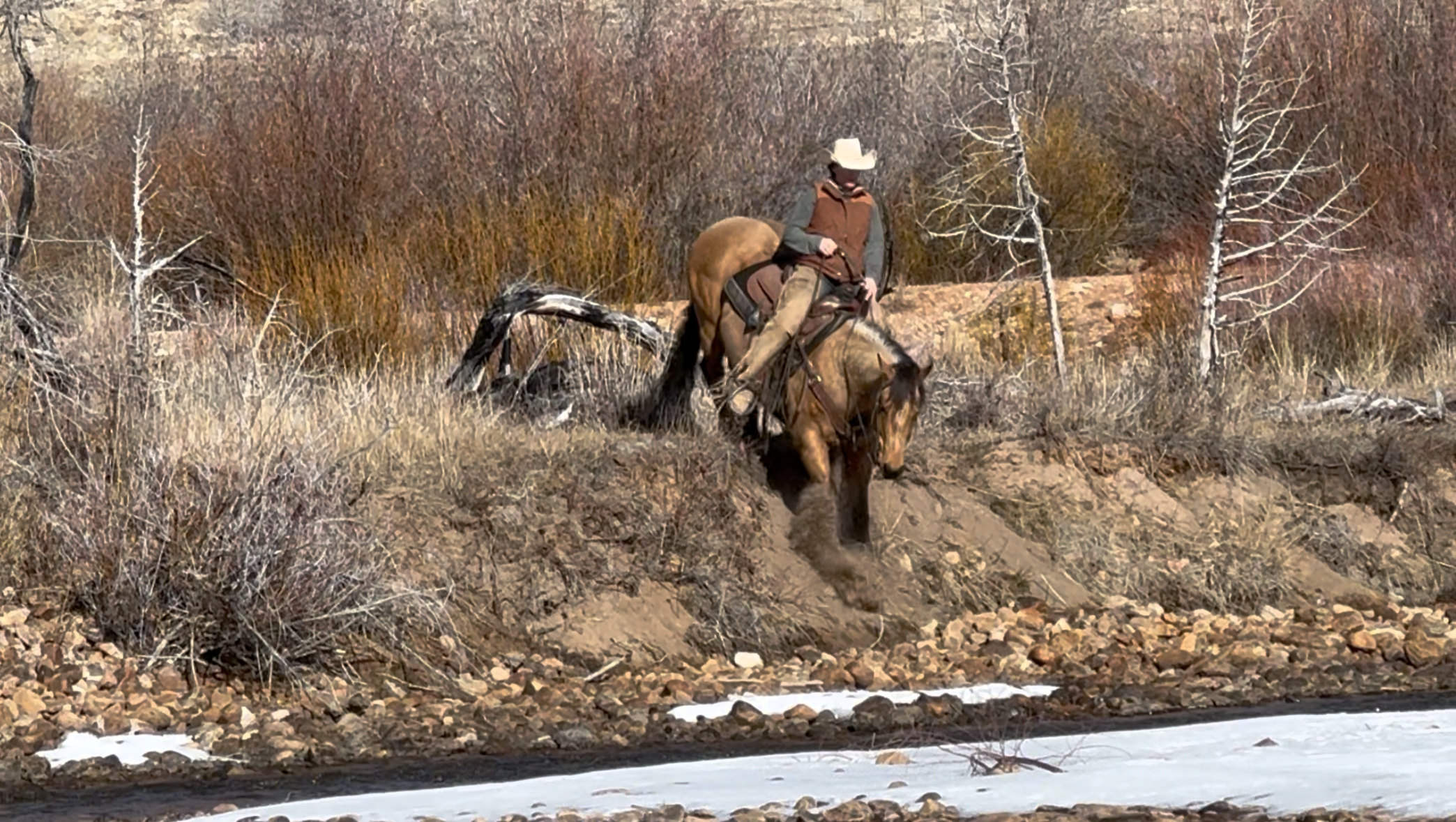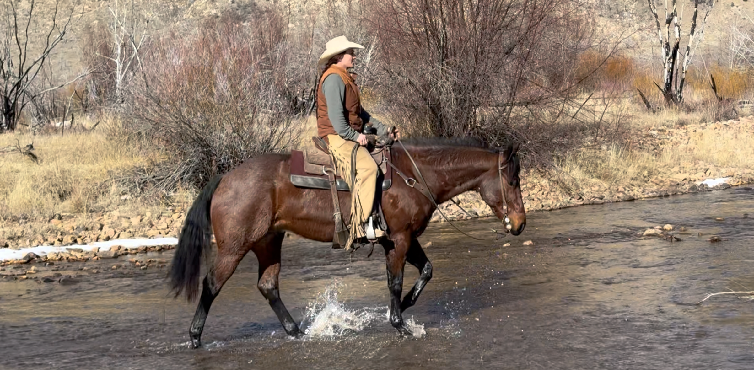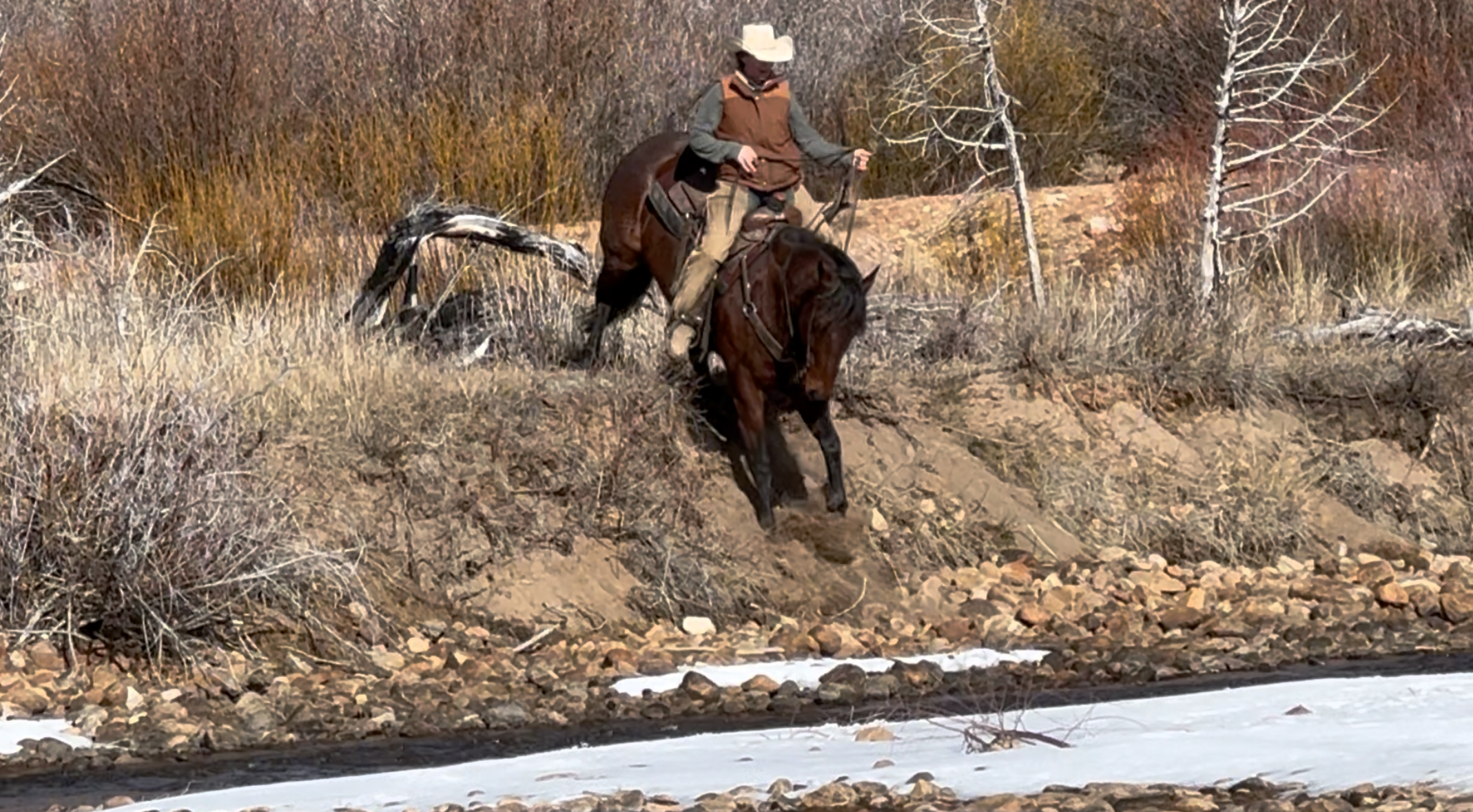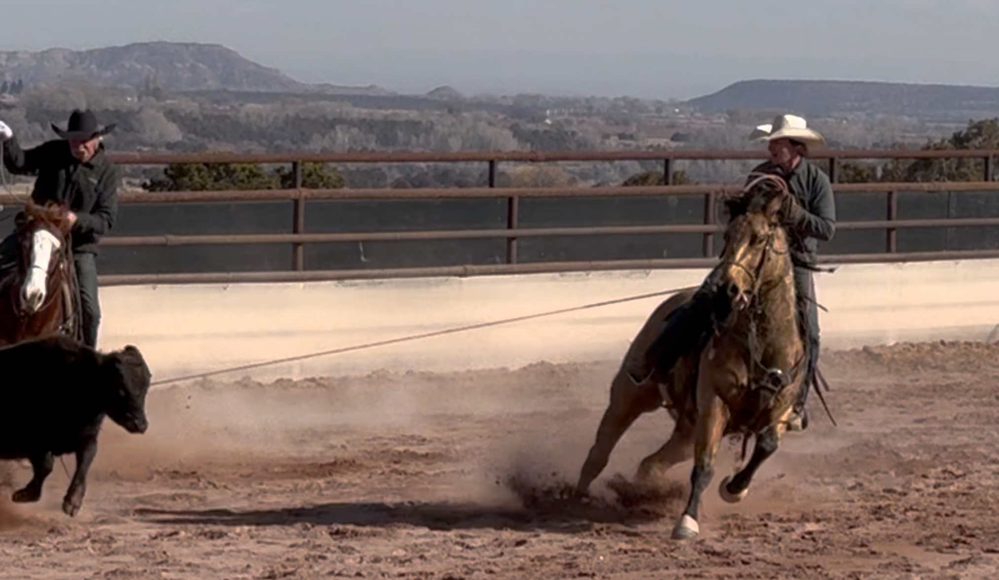 Jess came to us with only a few rides so we know everything about how he’s been started, ridden, trained etc. He is kind, gentle, friendly and talented. Jess is fancy broke with a huge stop, turns around nicely and is very respectful of the bridle and your feet. He scores well, can run down the strong cattle with ease but also has plenty of rate for the slower ones. He is honest in the corner and easy to handle steers on. He has a sharp face and is always a willing partner to the run. Heeling, he times cattle well, is never short or cheaty but is always ready with a big deep stop and is solid on the horn. Jess has been used outside as well and is always a fun smooth ride. We have enjoyed every ride on Jess, and now he is ready to go on and be someone else’s #1