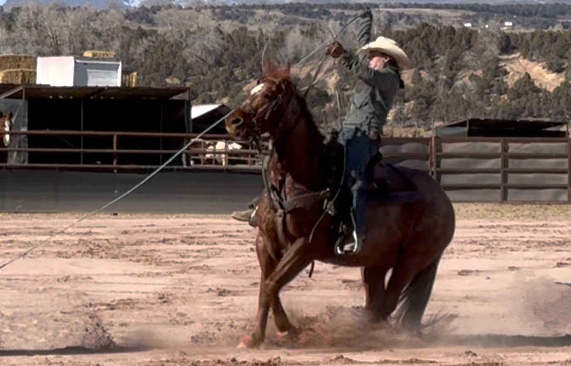 Stetson is fancy, gentle, and talented. He has been used outside, in the feedlot, and in the arena. He is truly one hand broke, stops well, has a good turnaround, is easy to operate and good strided. He is a solid switchender that’s ready to go win. As a head horse, he scores well, runs hard, and is always responsive in the handle so he is adaptable from high number ropers to low numbers. Heeling, he is solid in the box, times cattle well and makes catching easy. He is solid on the horn and can be tied on solid as well as dallying. He is always the same horse, never offered to buck or be silly and is easy to handle and be around on the ground. Stetson is good to shoe, bathe, clip, catch, haul etc. He crosses water, mud, brush, rock or anything else you point him at easily. We have used him to pony colts, break in cattle, and anything else you may need. Stetson is a fun horse that would be a great addition to anyone’s string. He has an old shin splint on the right front but it causes him no issues.